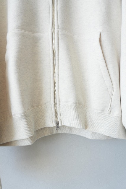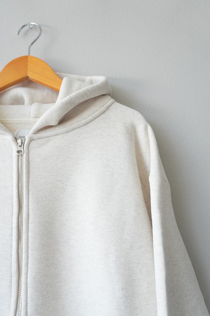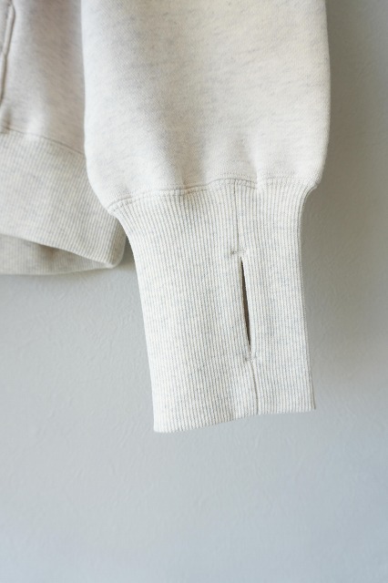 ジャガード機でゆっくり時間をかけて丁寧に編むことで太番手の綿と膨らみのある裏毛が実現