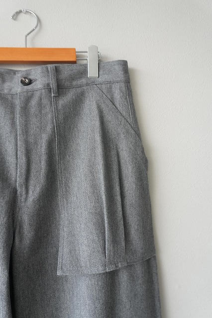 交織で打ち込みが良く織る事によりドライタッチであたたかみのあり、表情感があるデニム風に仕上げた素材を使用しています。