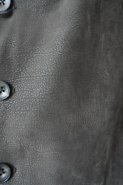 80.90年代のヴインテージアイテムをイメージした素材でクリンクルレザーの外観を模倣しつつも表面にフロッキー加工を施し、スウェードの風合いを表現しています。
