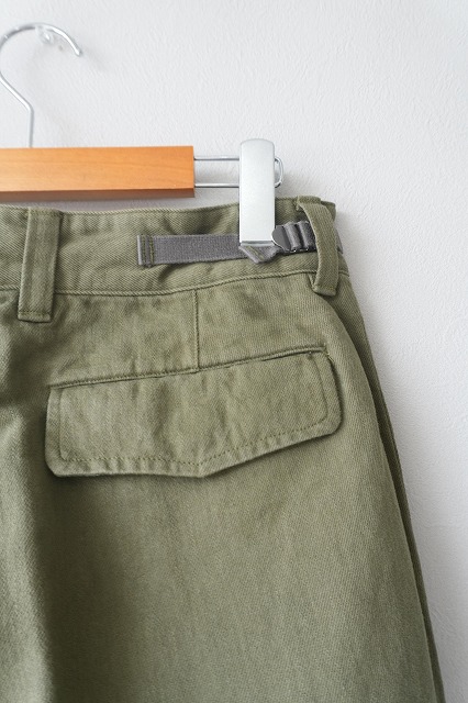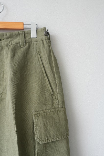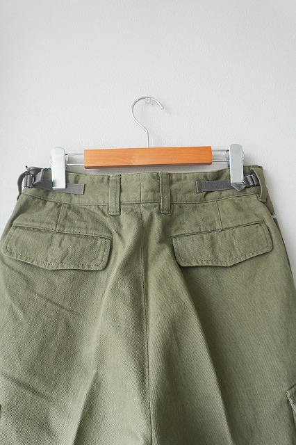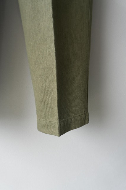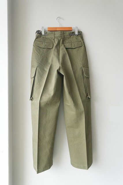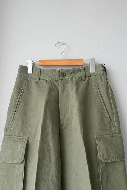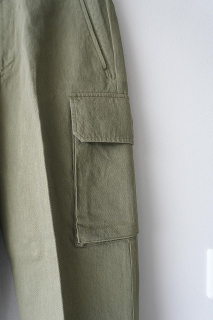 フランス臭のするカーゴパンツですが、カーゴポケット付近からスラックスパターンで仕上げ、ステッチやミリタリー要素を廃することで、土臭さと上品さが混在する現代的なミリタリーパンツが完成しました。
