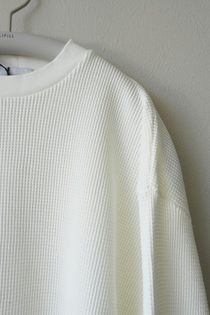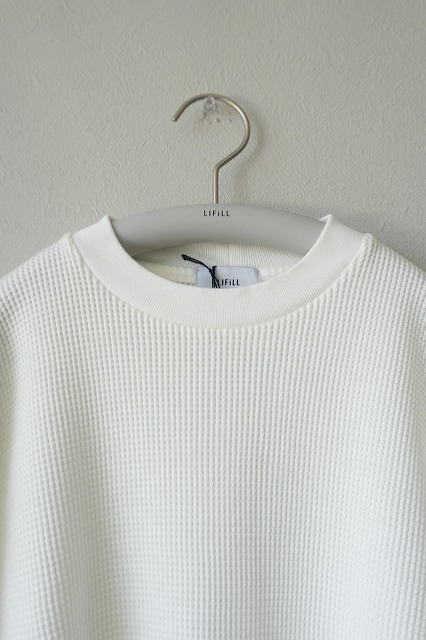 35/1を引き揃えで編むことで目を立たせ、LIFiLLらしい柔らかな着心地に仕上げた「COTTONY®WAFFLE」。
