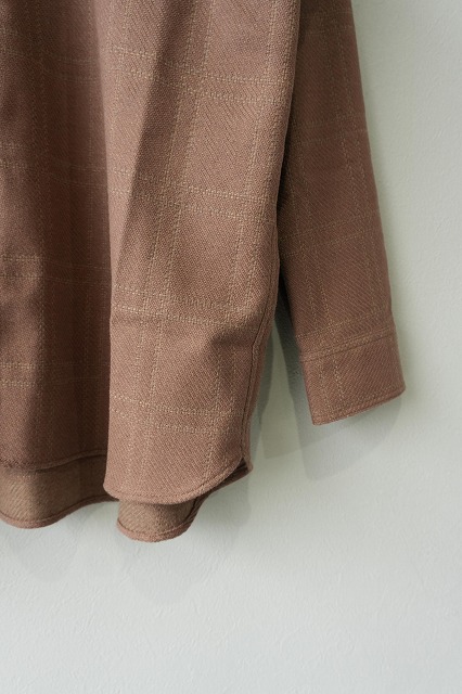 厳選された原料のみを⽤い、密度を詰めすぎず製織し、さりげない同⾊系の格⼦模様を表現。⾼級フラノのようななめらかさと光沢感があり、