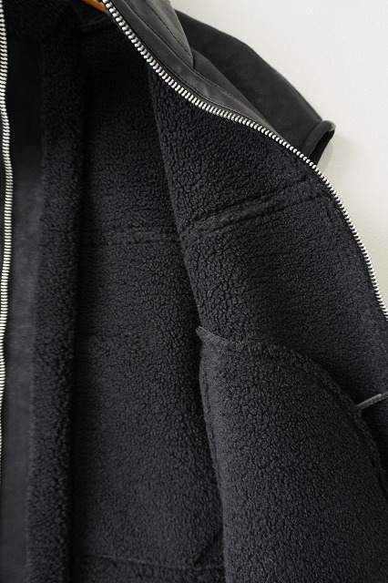 フェイクの表革とシープボアを貼り合わせて作成したオリジナルムートン素材。