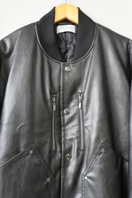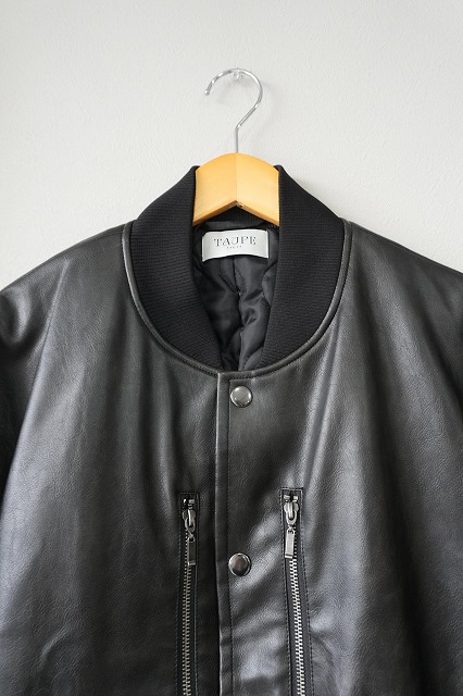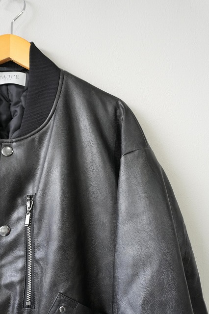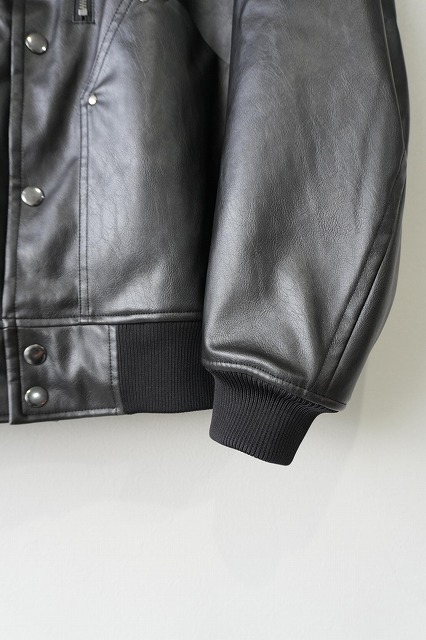 フェイクレザーを採用したスタジアムジャケットデザイン。