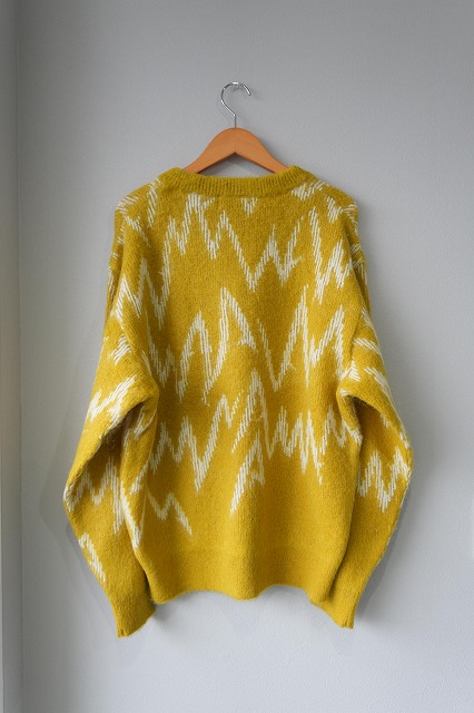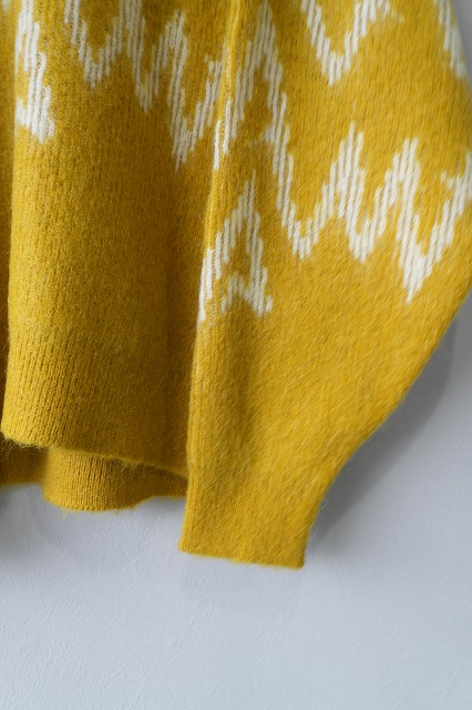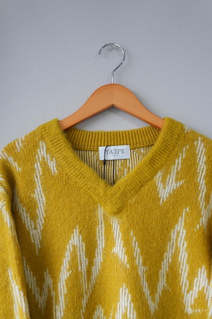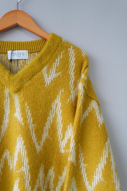 ジグザグに配色をデザインしたシャギーニット。Vネックを採用し、色気のある首元を演出しています。