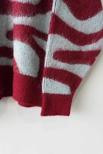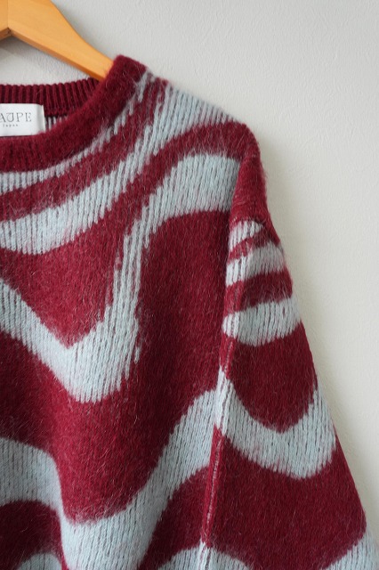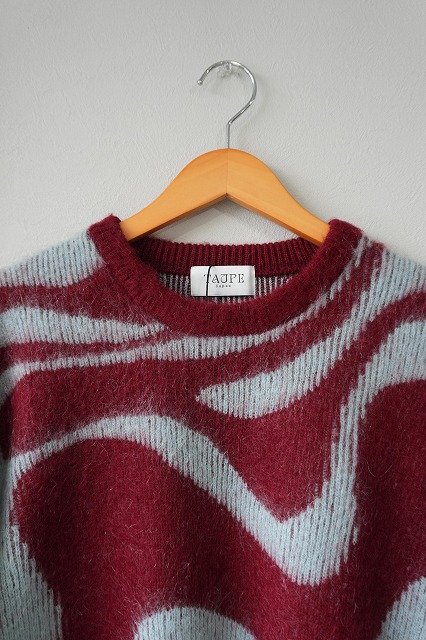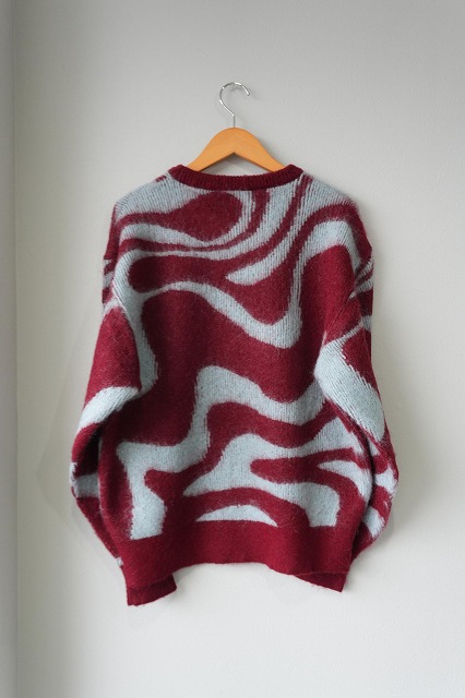 マーブル状に配色をデザインしたシャギーニット。曲線だけで構成し、ニットならではの技法で表現しています。