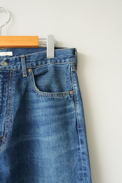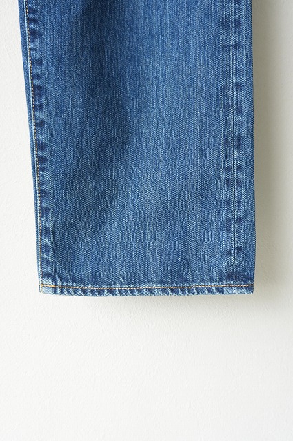 お尻周り、太ももにかけてゆとりを取り、膝から裾にかけて気持ち細くなるテーパードシルエットデニムです。