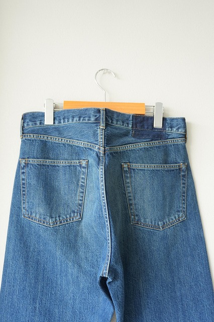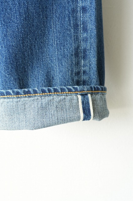 60年代にアメリカで製造されていたデニムを解析し、岡山にて製織、縫製。当時のタテに長く連なる紡績ムラを特殊なロープ染色にて表現。