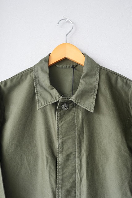身幅とアームホールはゆったりしたミリタリーウエアらしいシルエットを意識していますが、コートの中に忍ばせることも考えコンパクトなバランスに仕上げ、胸ポケットも排除することでスッキリとした面構えに。