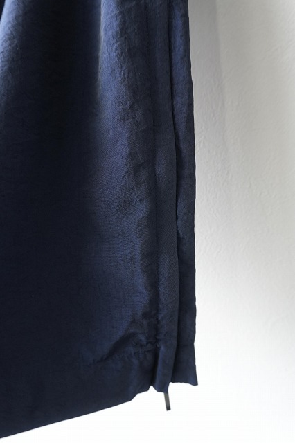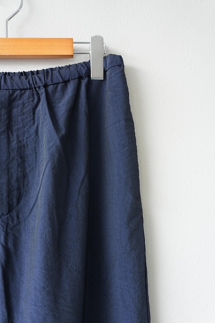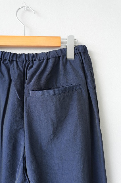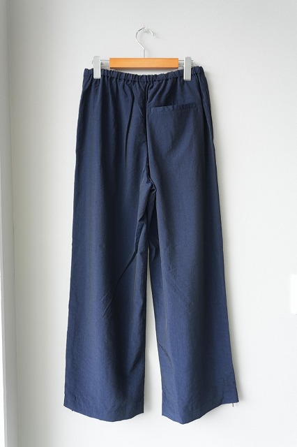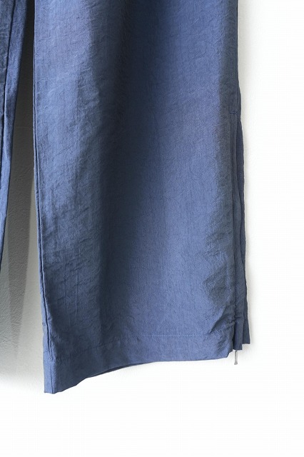 ナイロン × シルクの塩縮タフタで仕上げたウォームアップパンツ。
