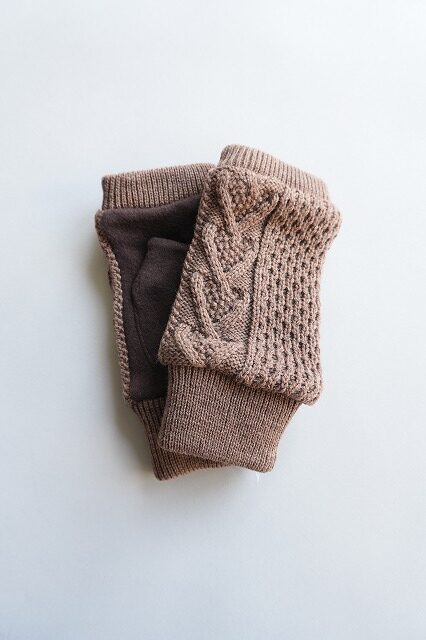 【WOMEN】フィンガーレスケーブルジャージグローブ OB83502L8-DBR 寒い季節に、ほっこりケーブル編みニットのフィンガーレスジャージグローブ。 甲側に季節感のあるケーブル編みニットを使用し、掌にジャージ生地を合わせた上品なデイリーユースのグローブです。 裏地は柔らかくあたたかい、マイクロボアを使用。 フィンガーレスタイプで、手袋を着用したままタッチパネル操作も可能。 サイズ 21~22cm(約19cm) 素材 掌部分 アクリル、レーヨン ニット部分 アクリル100% 裏地 マイクロボア ORuKuBET【オルクベット】 カラー DBR サイズ 21~22cm(約19cm) 在庫状態 : 在庫有り ¥4,950(税込) 只今お取扱い出来ません 数量