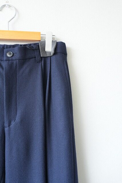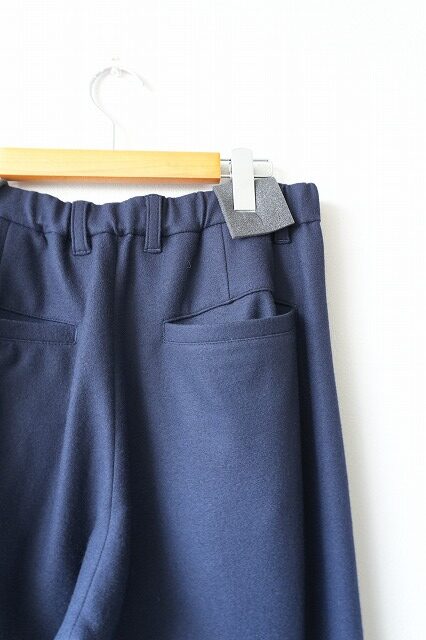 ヒップ~腿周りのボリュームを出しつつ裾にかけて緩くテーパードにすることで、男性、女性どちらが履いても野暮ったく見えずニュアンス感のあるシルエットに仕上げました。