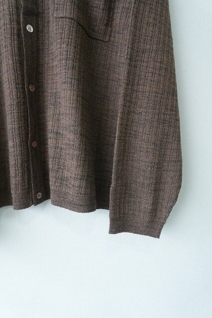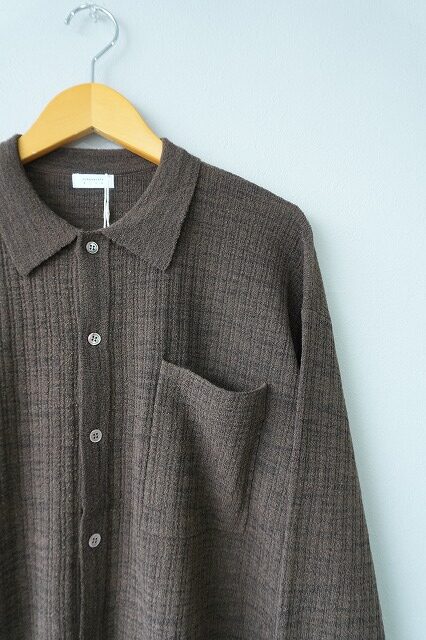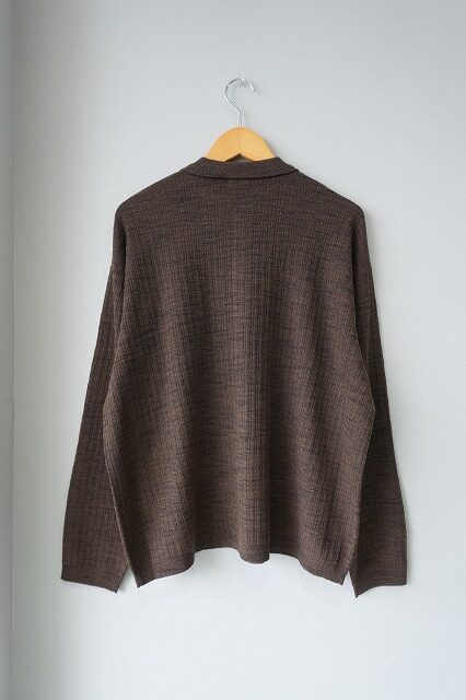 Crepe Knit Shirt 2601-006-BRW crepuscule【クレプスキュール】 サイズ 1 着丈 64cm 身幅 63cm 袖丈 56cm 肩幅 54cm 素材 ポリエステル37%、ウール25%、ナイロン23%、アクリル15% crepuscule【クレプスキュール】 カラー BROWN サイズ 1 在庫状態 : 在庫有り ¥22,000(税込) 只今お取扱い出来ません 数量