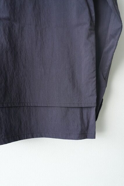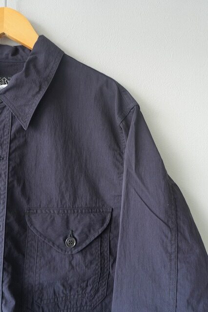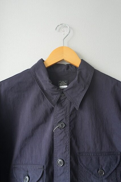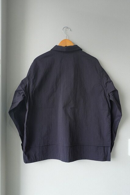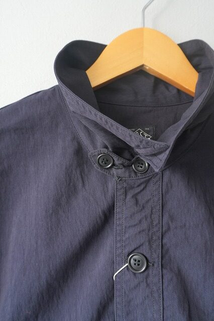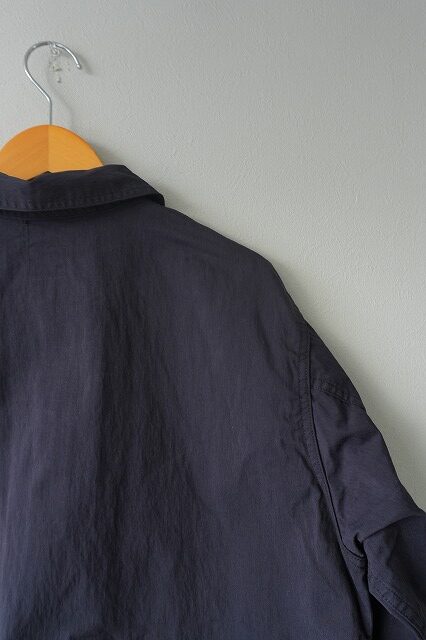 台襟一体化のチンストラップ付きの襟や低めにセットされたイレギュラーなポケット・・・今のムードに沿う、リラックスしたオーラを放っています。