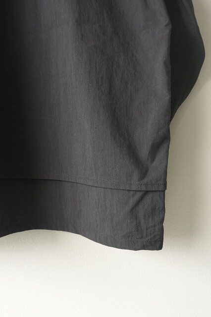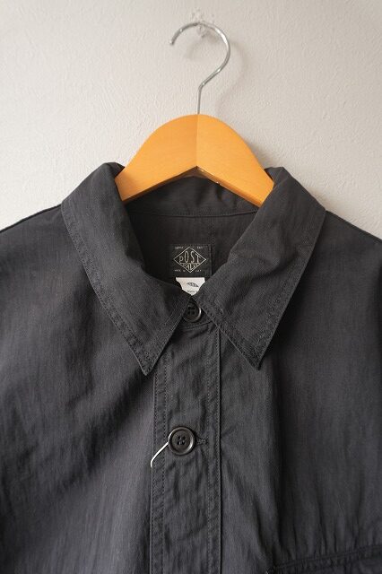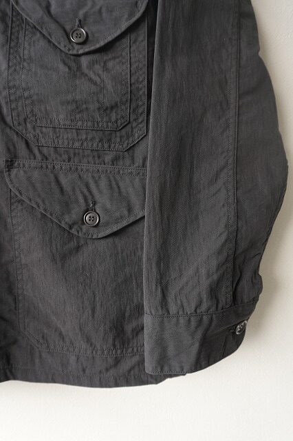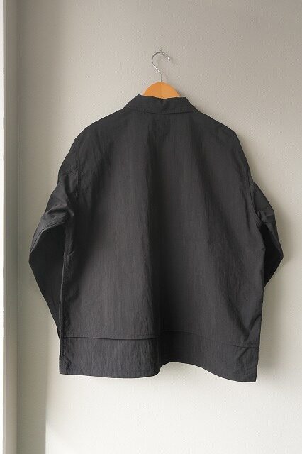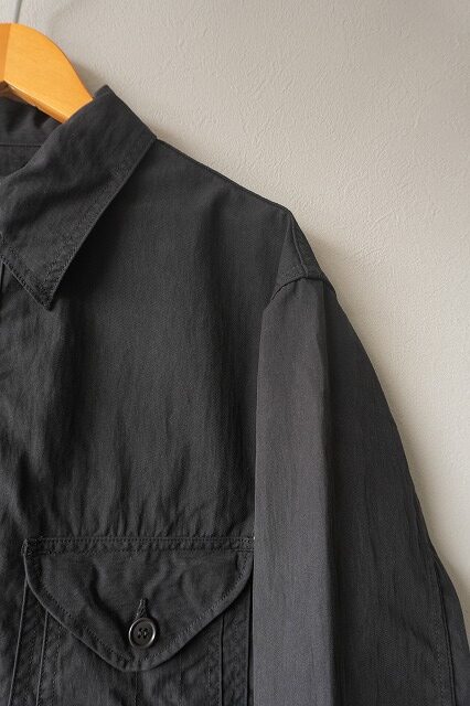 台襟一体化のチンストラップ付きの襟や低めにセットされたイレギュラーなポケット・・・今のムードに沿う、リラックスしたオーラを放っています。