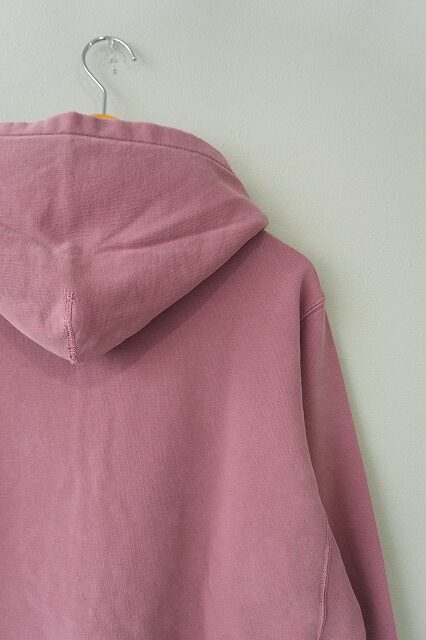 REMI RELIEFのSP加工はこの自然の原理を再現して、昔ながらの直接染料を使い酸素と結合させて、ゆっくりと長時間かけて染料を退色させています。ボディもそれなりのダメージをおいますが、薬品を入れたりバイオによる生地を無理に融かしたりするような加工とは違い、古着本来の経年によるダメージにもっとも近い雰囲気で、着続けていくほどに本当の古着と見分けがつかなくなるよう自然な加工を施しています。