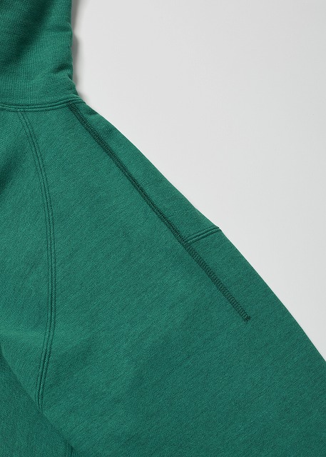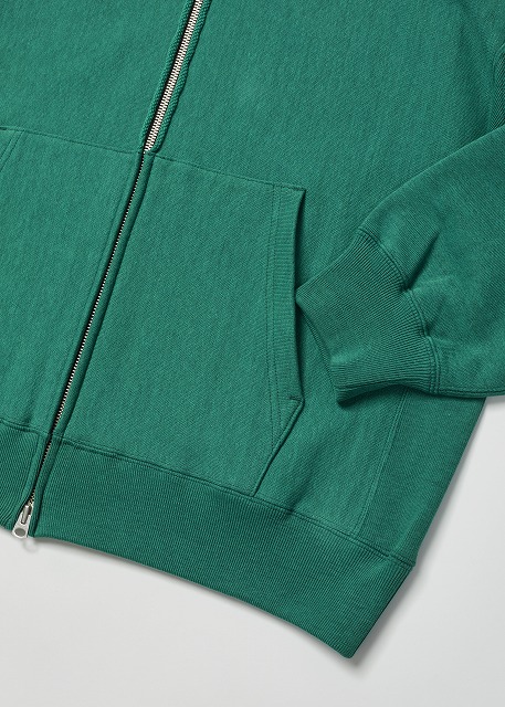 杢グレーの状態から染⾊、起⽑加⼯することで⽣まれる奥深い⾊合いが特徴。