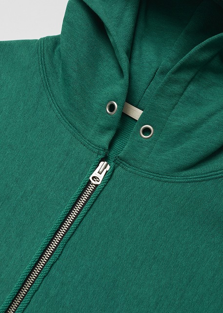 フロントのジップ部分が途中まで断ち切られた仕様と、前後で違いのある変則的な袖付けが特徴。