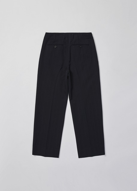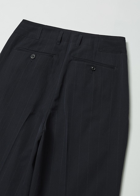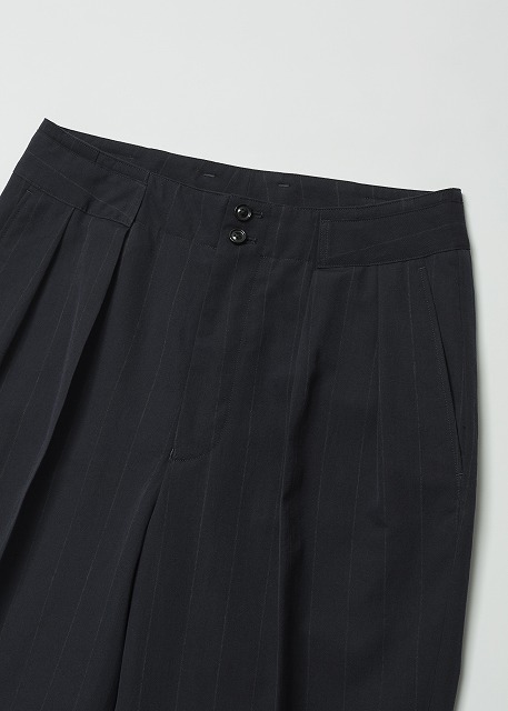 WOOL WASHI STRIPE TUCKED TROUSERS