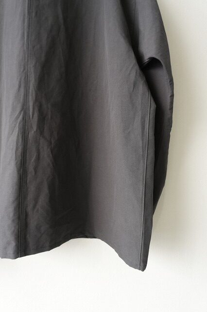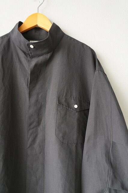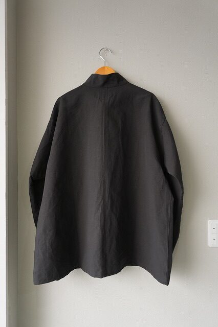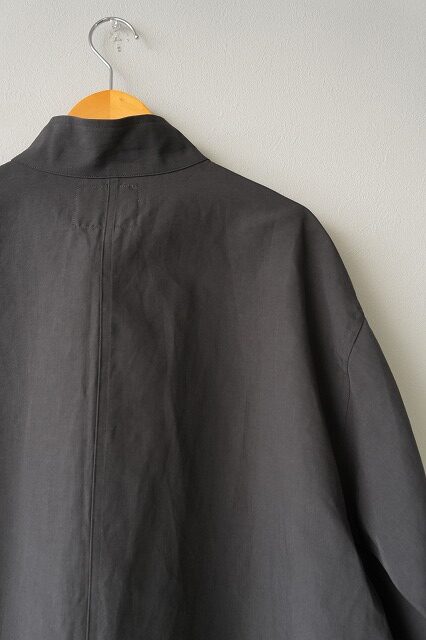 前明きはファスナー仕様から比翼仕立てに変更し台衿は折り返してシャツの羽根衿のようになるように設計しております。