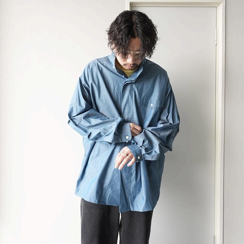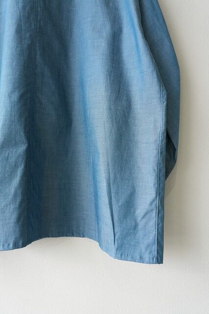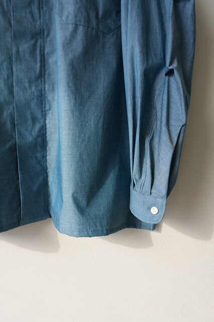 シャンブレーには珍しく縦糸がブルーとグリーンの混ざったような糸で玉虫色に見えるのが特徴です。