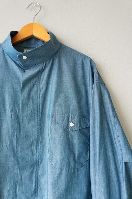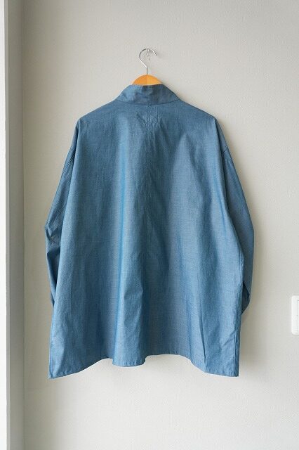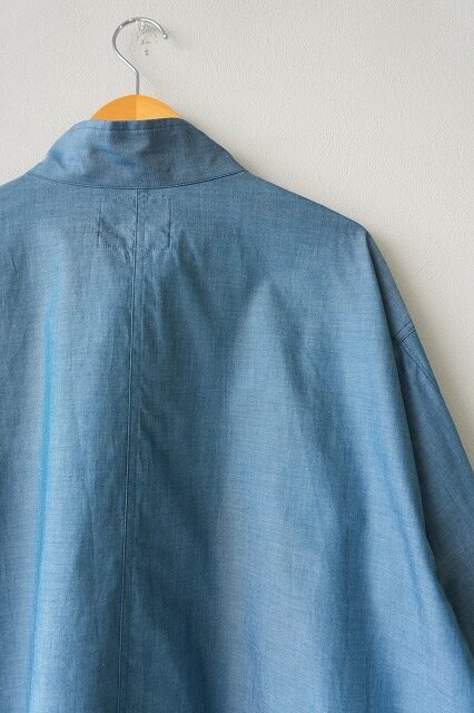 前明きはファスナー仕様から比翼仕立てに変更し台衿は折り返してシャツの羽根衿のようになるように設計しております。