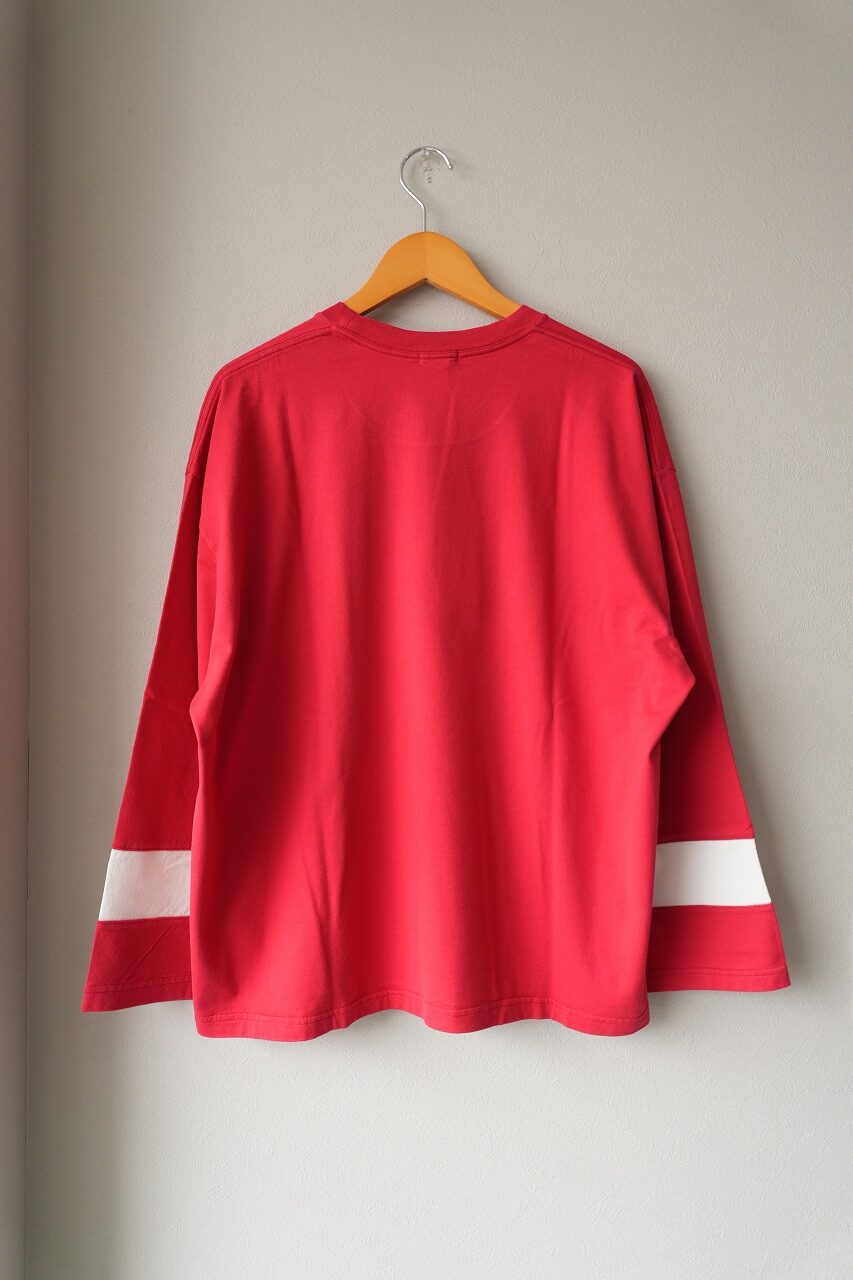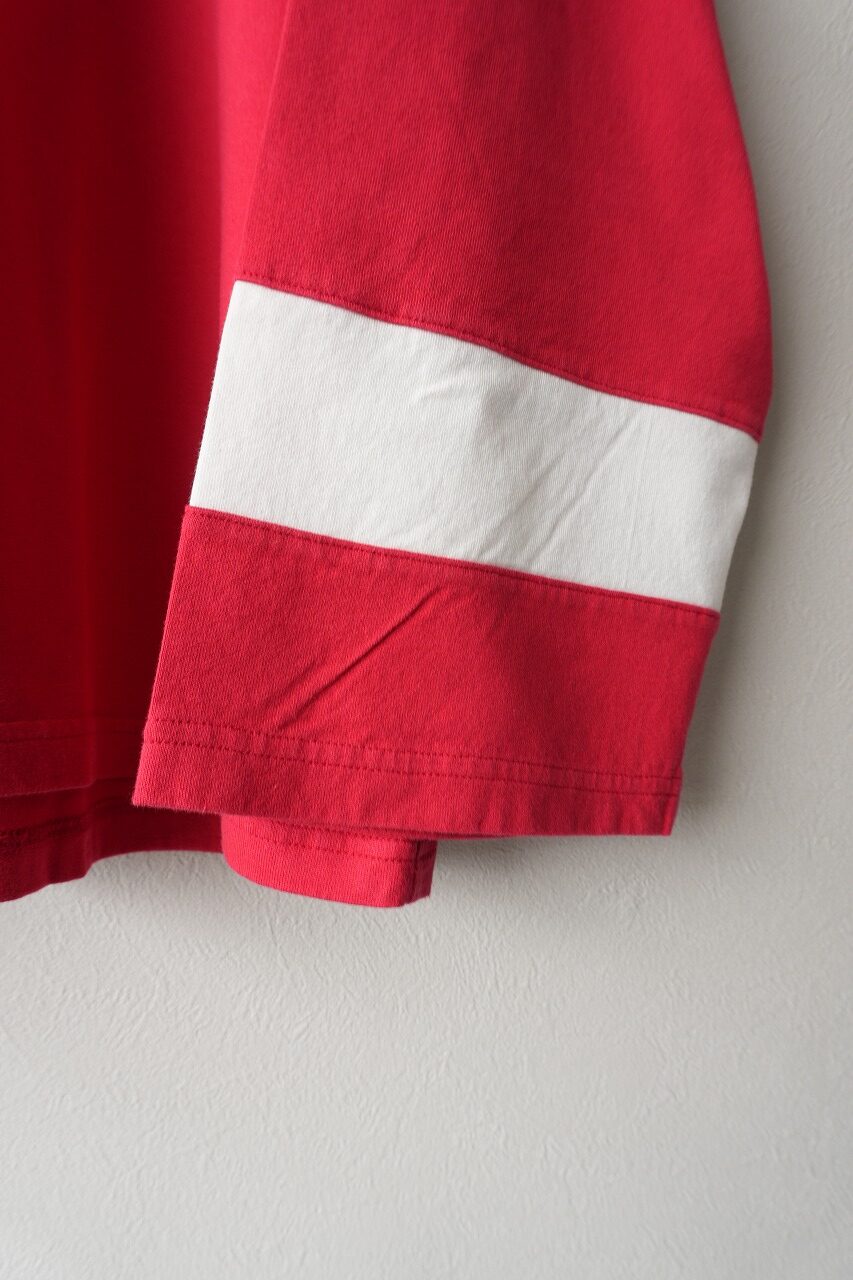 panel sleeve comfortable t-shirts aws5-cs009-RED ビンテージのフットボールTeeをベースにしたパネルスリーブのTシャツですが、スポーティーな要素が強いとあまり着ないので、フラットな見た目に仕上げています。 ゆったりとした身幅と袖幅、袖の切り替えが特徴で、8~9分の袖丈にしています。 柔軟加工を施した、肌当たりの良いリラックスシルエットのTシャツです。 サイズ 2 着丈 64cm 身幅 61cm 袖丈 51cm 肩幅 59cm 素材 コットン100% awasa【アワサ】 カラー red×white サイズ 2 在庫状態 : 在庫有り ¥17,600(税込) 只今お取扱い出来ません 数量