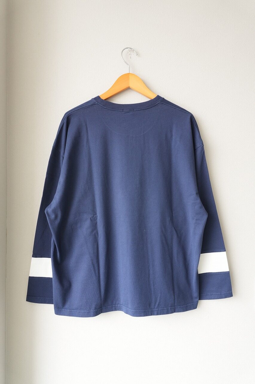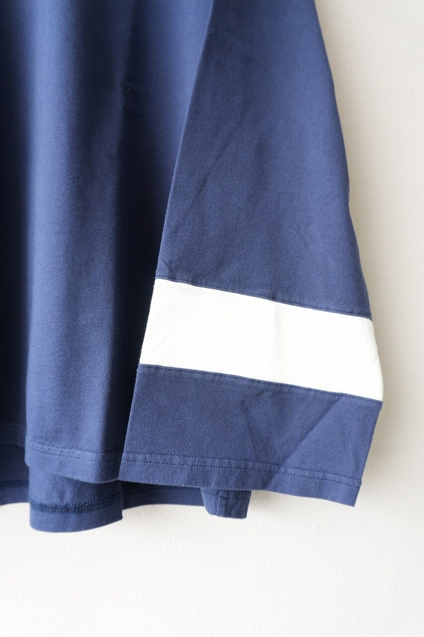 panel sleeve comfortable t-shirts aws5-cs009-NVY ビンテージのフットボールTeeをベースにしたパネルスリーブのTシャツですが、スポーティーな要素が強いとあまり着ないので、フラットな見た目に仕上げています。 ゆったりとした身幅と袖幅、袖の切り替えが特徴で、8~9分の袖丈にしています。 柔軟加工を施した、肌当たりの良いリラックスシルエットのTシャツです。 サイズ 2 着丈 64cm 身幅 61cm 袖丈 51cm 肩幅 59cm 素材 コットン100% awasa【アワサ】 カラー navy×white サイズ 2 在庫状態 : 在庫有り ¥17,600(税込) 只今お取扱い出来ません 数量