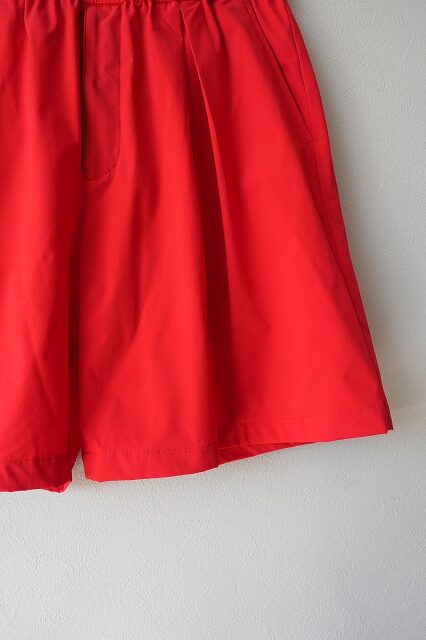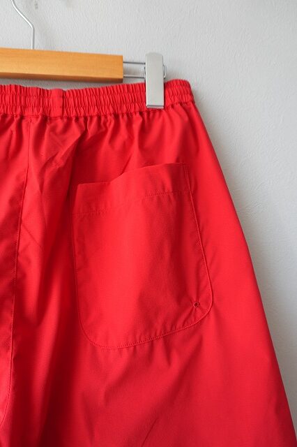 ポケットの袋布はメッシュ素材、後ろポケットには閂で水抜き穴をつけており、このまま海に入ってしまいたくなるようなショーツをイメージし、製作しました。ショーツと一緒に花柄ニットジャガードバッグがついております。ショーツとバッグでぜひ海に。また暑く長い日本の夏でもファッションを楽しんでいただきたいです。