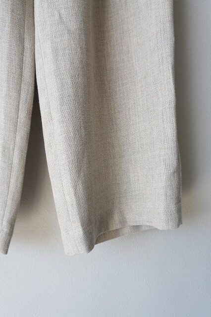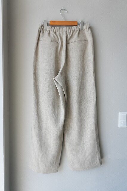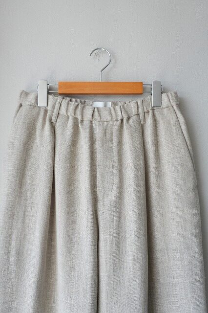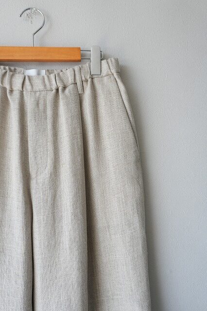 Wide easy pants - Linen SN-619B リネン素材を使用したワイドシルエットのイージーパンツです。 ウエストはゴム仕様で内側のスピンドルにて調節が可能、前開きはファスナー付き、ベルトループも付いており、ベルトの使用も可能です。 ワンタックを入れ腰回りはゆとりをもたせ、通気性も高く、夏にぜひご着用いただきたい、リラックスパンツに仕上がっています。 サイズ M ウエスト 76cm~ 股上 33cm 股下 72cm 裾幅 27.5cm 素材 本体 リネン100% superNova.【スーパーノヴァ】 カラー Natural サイズ M 在庫状態 : 在庫有り ¥34,100(税込) 只今お取扱い出来ません 数量