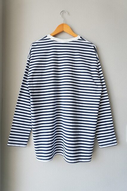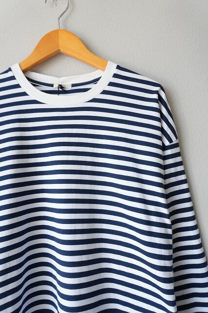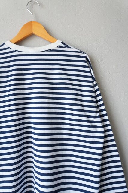 身頃を直線的なボックスシルエットにして、身幅に適度なゆとりをもたせたことで性別を問わず着る事が出来る普遍的なボーダーtee。