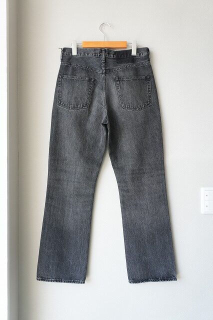 やや深めの股上に、ヒップやワタリに程よいゆとりを持たせ、膝下から裾にかけて緩やかに広がる微フレアシルエット。クラシックな佇まいの中に、今の空気を感じさせるバランスで仕上げたデニムパンツです。