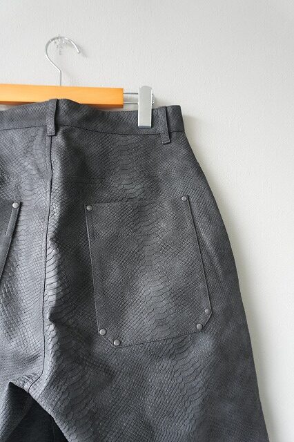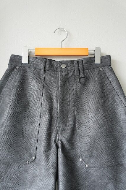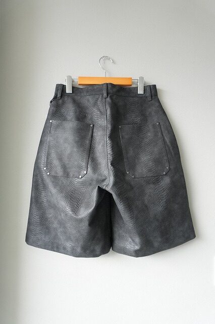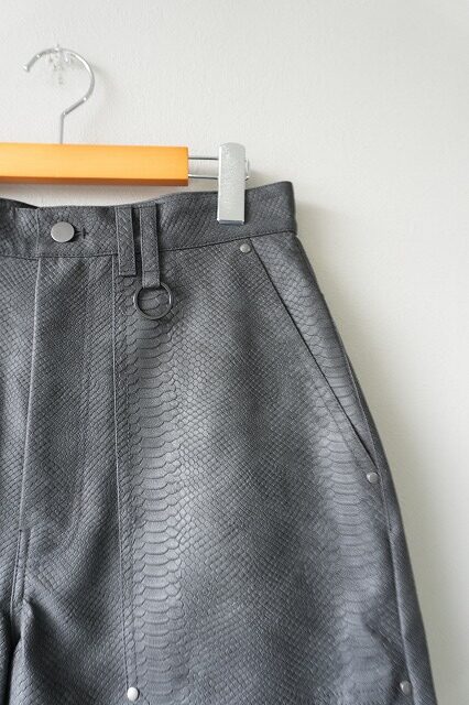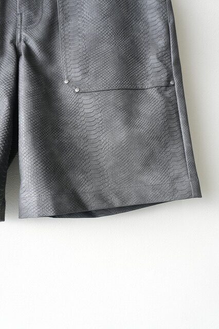 パイソン柄の型押しフェイクレザー素材を採用したワークショーツデザインパンツ。
