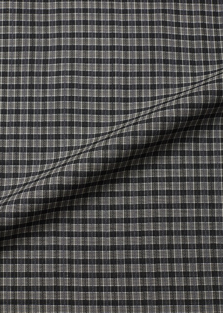 ⻑短繊維が均⼀に混繊できる特殊紡績のウール原料を使⽤したチェック素材。