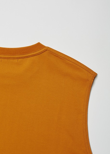 1枚でも着⽤できるようにリラックス感あるフィッティングに仕上げたスリーブレスTシャツ。