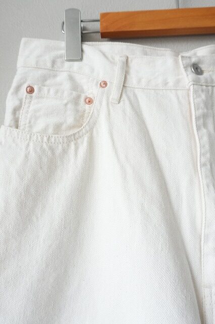 50年代後半にアメリカで製造されていたデニムの糸の太さや本数まで計測して解析し、米綿100%糸を使用して、岡山にて製織、縫製。日本の暑い夏でも穿けるように11ozにて。