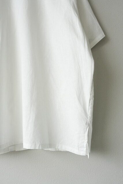 ボックスシルエットのゆったりしたサイズ感、裾脇はスリット仕様、