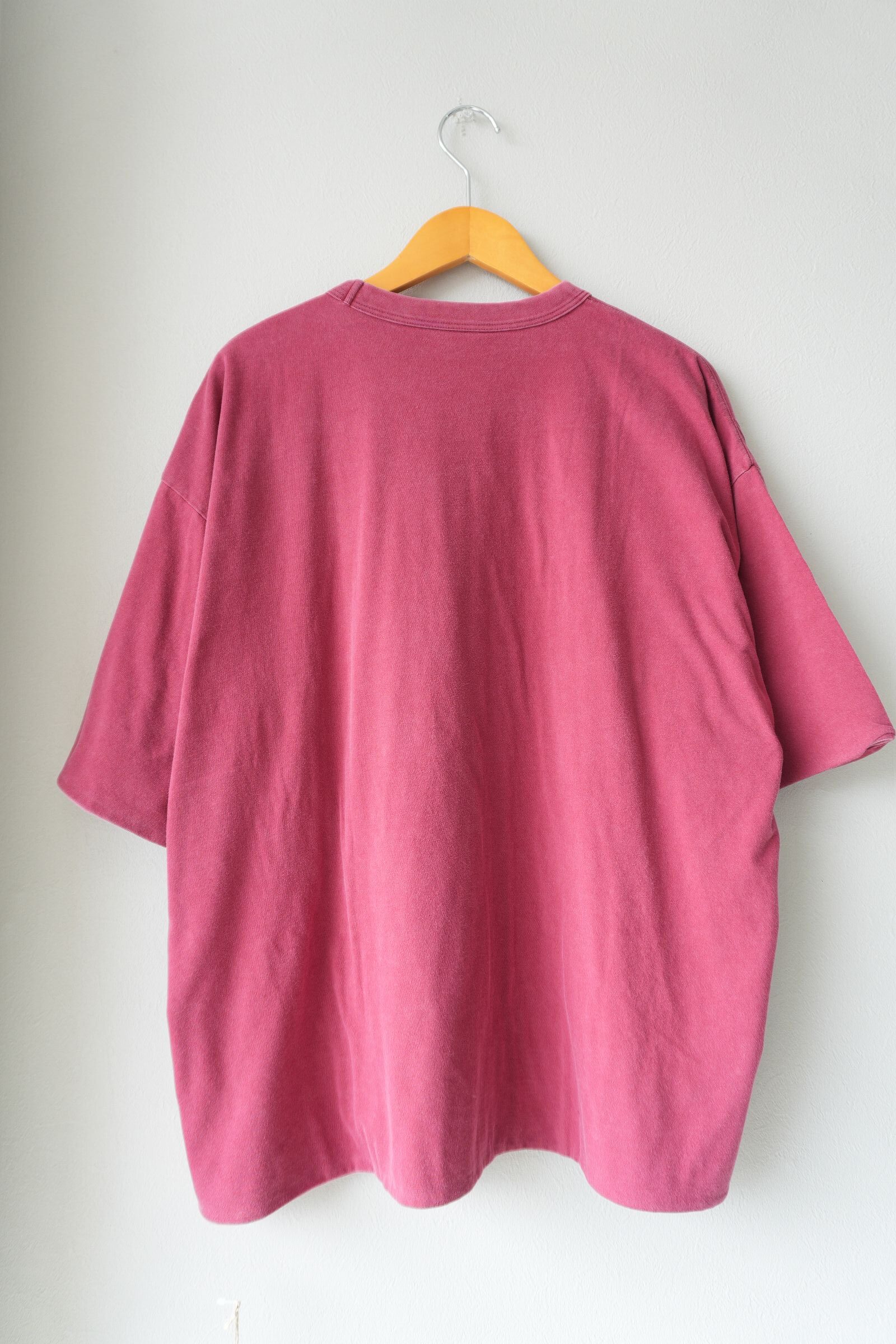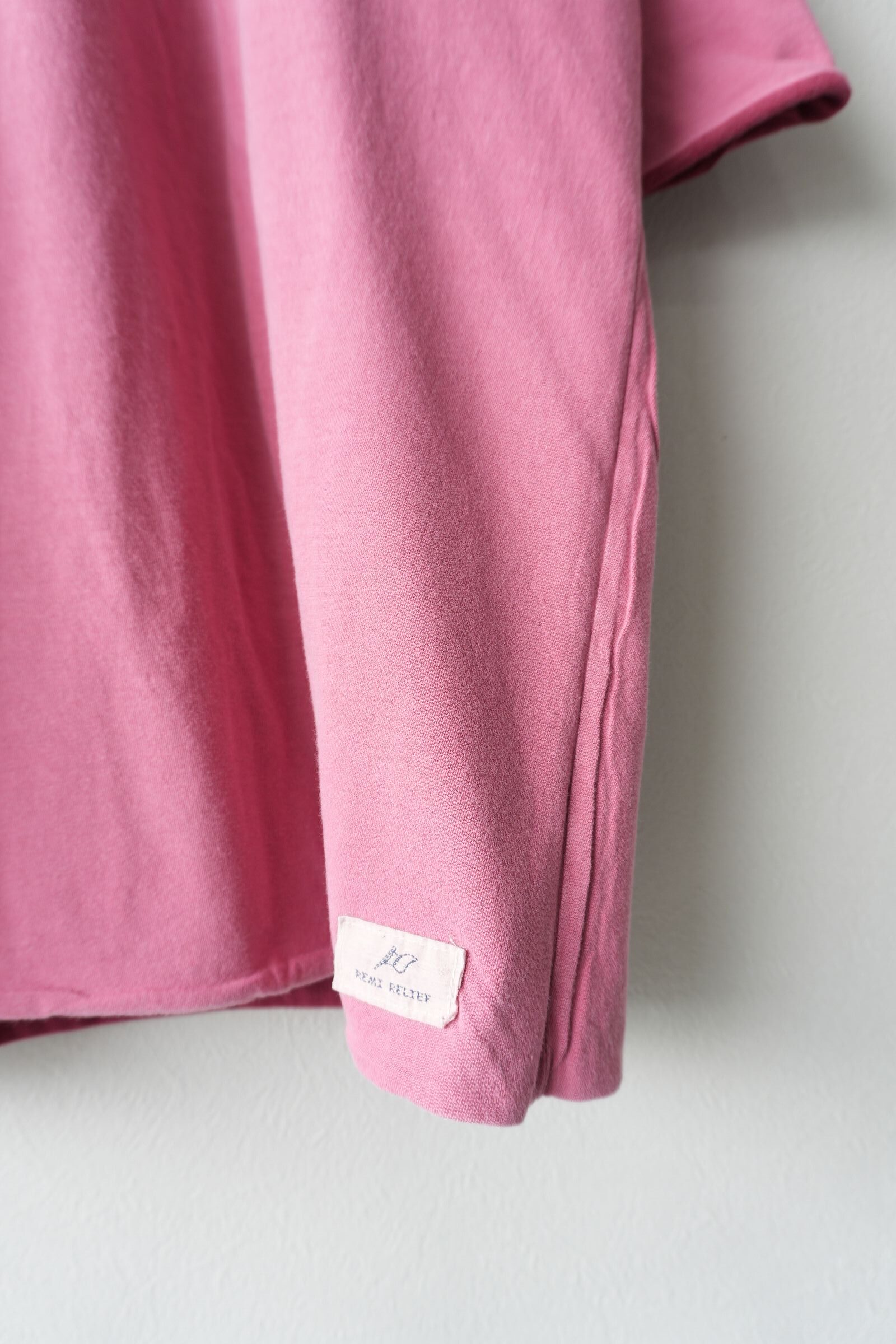 REMI RELIEFのSP加工はこの自然の原理を再現して、昔ながらの直接染料を使い酸素と結合させて、ゆっくりと長時間かけて染料を退色させています。ボディもそれなりのダメージをおいますが、薬品を入れたりバイオによる生地を無理に融かしたりするような加工とは違い、古着本来の経年によるダメージにもっとも近い雰囲気で、着続けていくほどに本当の古着と見分けがつかなくなるよう自然な加工を施しています。